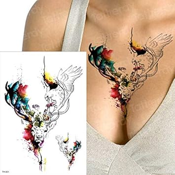 Tattoo Body Art Moose Tattoos Water Color Tatoo Women Bust Back